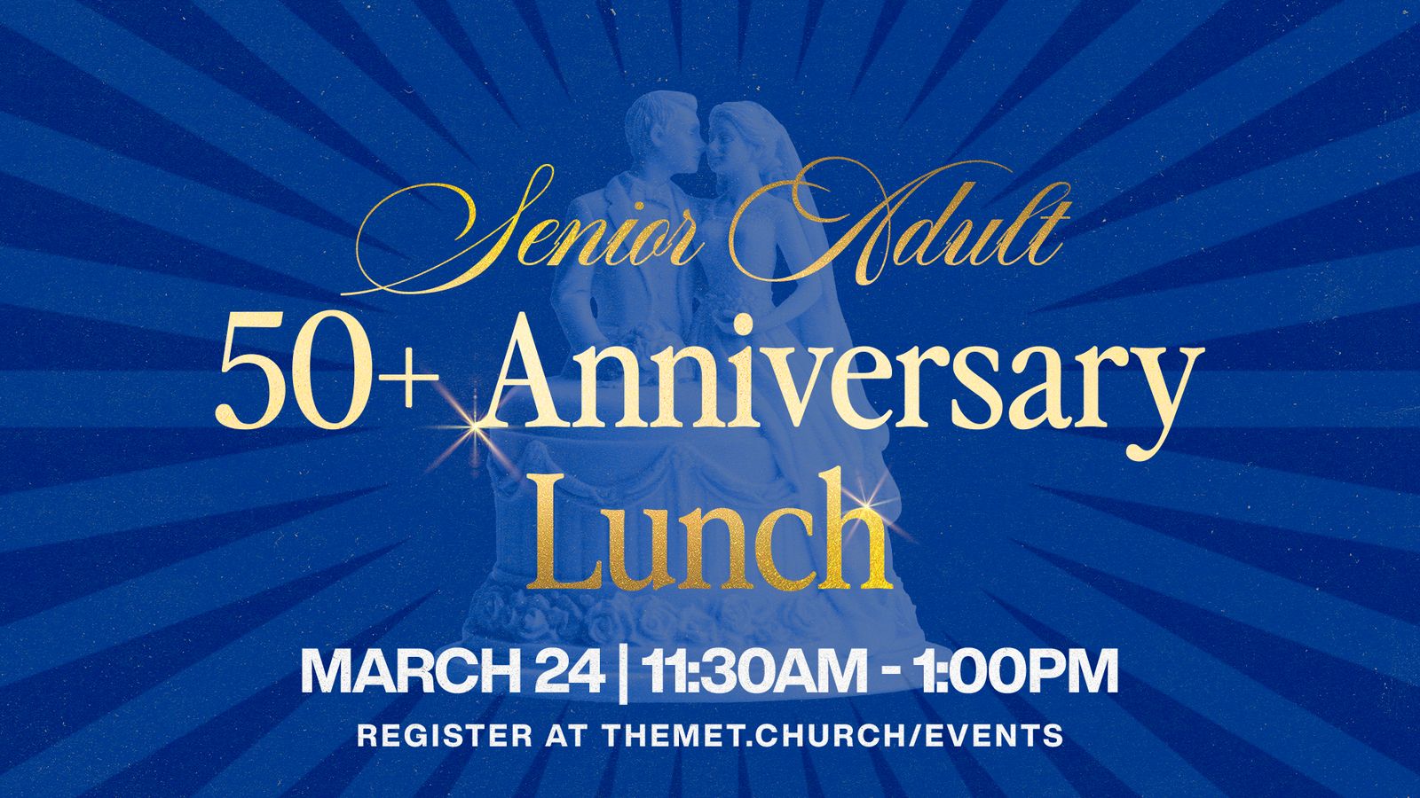 Join us for a special celebration lunch on Tuesday, March 10, from 11:30am to 1:30pm. We will gather together to honor and celebrate the love and commitment of married couples who have been together for 50 years or more.