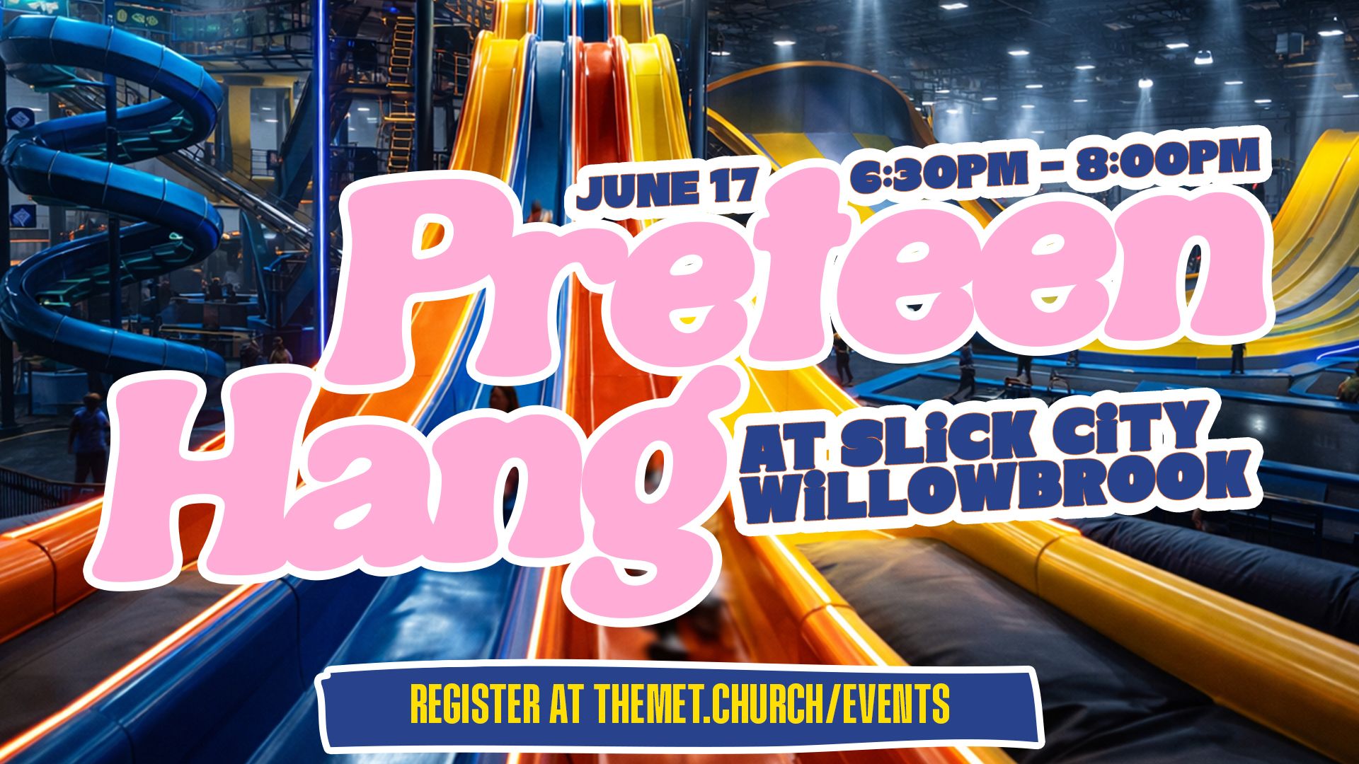 Join us on Wednesday, June 17 from 6:30 to 8:00 pm at Slick City Willowbrook for a fun night of big slides, laughter, and new friendships.